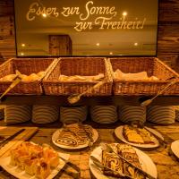 По утрам подают завтраки «шведский стол», где каждый гость сможет угоститься национальными тирольскими и европейскими блюдами. Также можно посетить ресторан и заказать еду по меню.