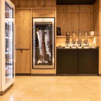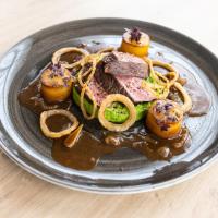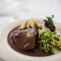 В ресторане можно заказать блюда из органических и местных продуктов, а также разнообразные вина.