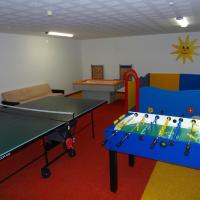 Также есть детская игровая комната с аэрохоккеем, настольным теннисом, настольным футболом и дартсом.