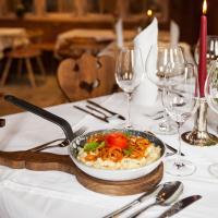 Работает ресторан, где по меню можно заказать блюда национальной кухни. Есть местное производство молочных продуктов, мяса, овощей и фруктов. По желанию, питание может быть доставлено по утрам в апартаменты.