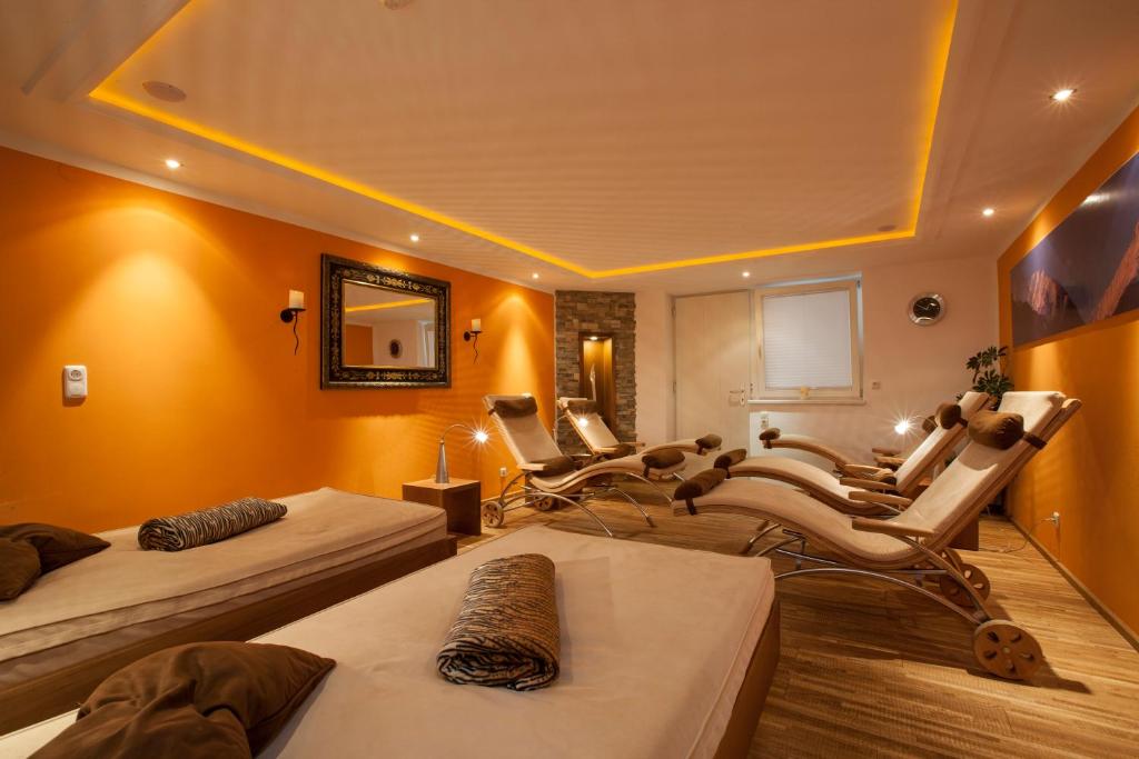 Гости отеля Wohlfühl Hotel-Garni Robert могут выпить бокал вина в саду и отдохнуть на лужайке для загара.