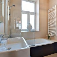 К услугам гостей полностью оборудованная кухня с посудомоечной машиной, гостиная зона с диваном и стильной мебелью, а также ванная комната с современным душевым уголком.