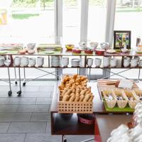 В кафетерии на территории гостиницы ежедневно готовят вкусные континентальные завтраки для проживающих. В обеденное и вечернее время готовят блюда по заказам посетителей.