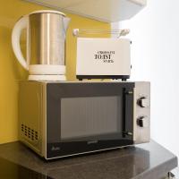 В каждых апартаментах есть кухня с микроволновой печью и холодильником, телевизор с плоским экраном и спутниковыми каналами, гладильные принадлежности, письменный стол и гостиный уголок с диваном.