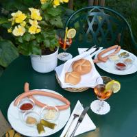 Летом завтрак подается в саду, а легкие закуски, кофе и пирожные также предлагаются гостям.