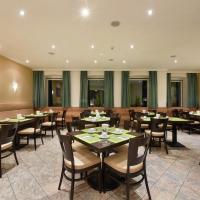 На территории гостиницы работает ресторан, где ежедневно готовят сытные завтраки. На обед и ужин можно заказать блюда из широкого списка меню. Формат питания гости выбирают сами.