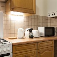 В числе удобств микроволновая печь, холодильник, духовка, чайник и кофемашина.