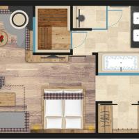 Роскошные люксы Wellness отделаны швейцарским кедром, в части из них есть гидромассажная ванна и сауна.