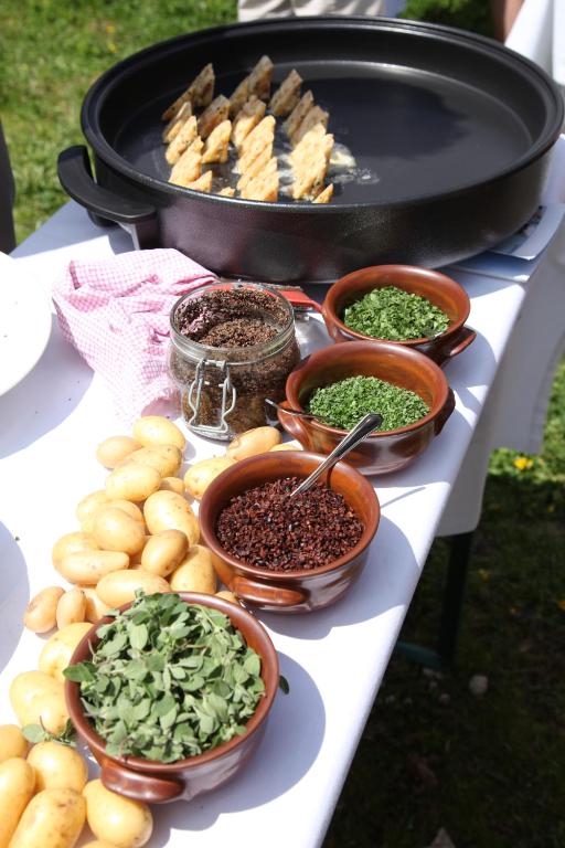В ресторане подают традиционные тирольские и интернациональные блюда, а также кушанья из дичи с частных охотничьих угодий отеля.