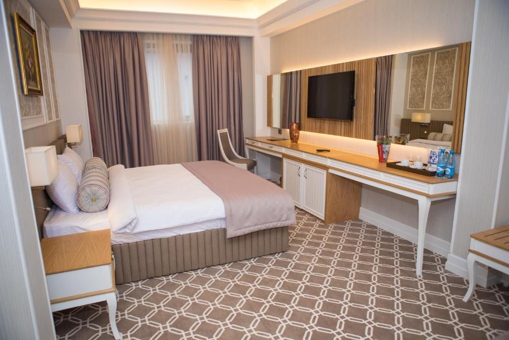 В современных номерах есть все, что нужно для отдыха и продуктивной работы бизнес-путешественника или туриста. Независимо от выбранной категории, в каждой комнате есть роскошная кровать, ЖК-телевизор и кондиционер. В помещении свежий ремонт, а на стойку регистрации можно позвонить из номера в любое время. В собственной просторной ванной установлен душ и большое зеркало.