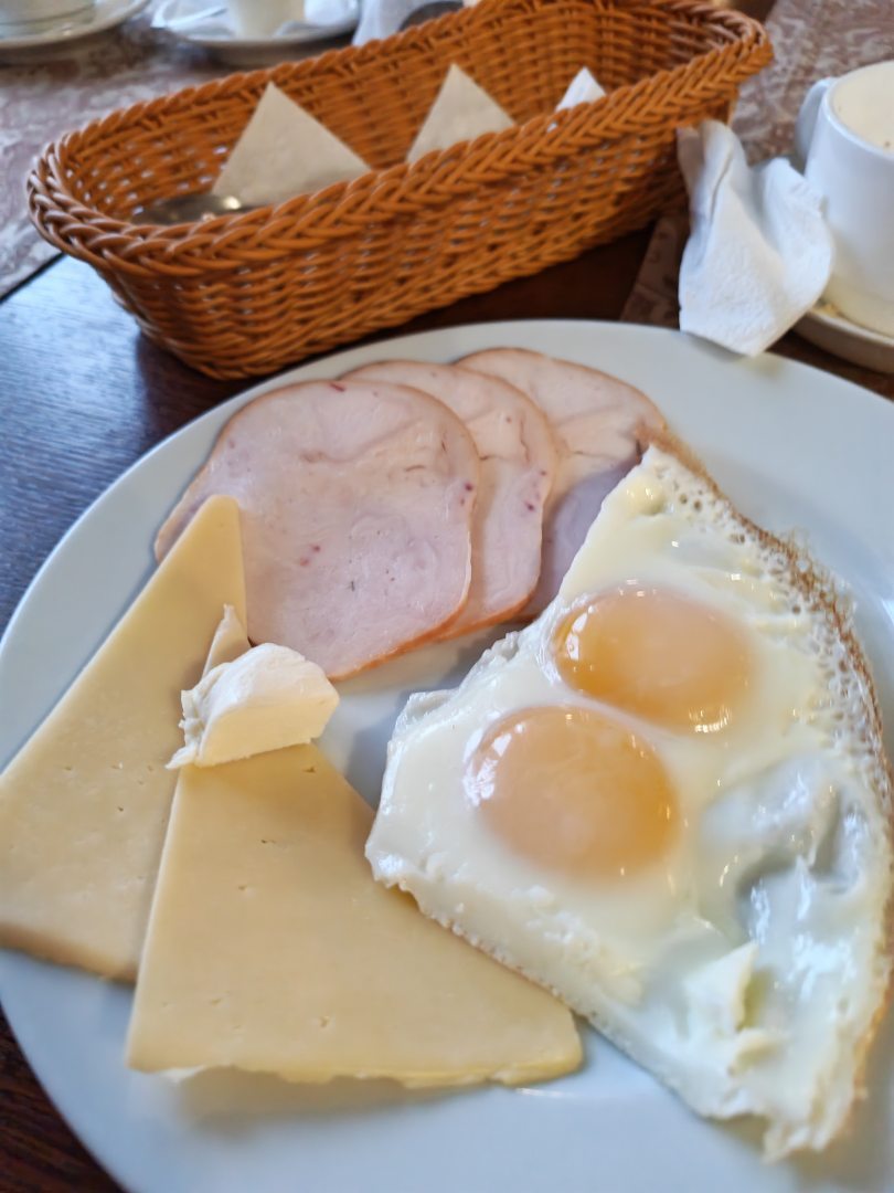 Завтраки: каша, яичница, сыр, ветчина, чай, кофе. Без тосковать, но вполне сытно.