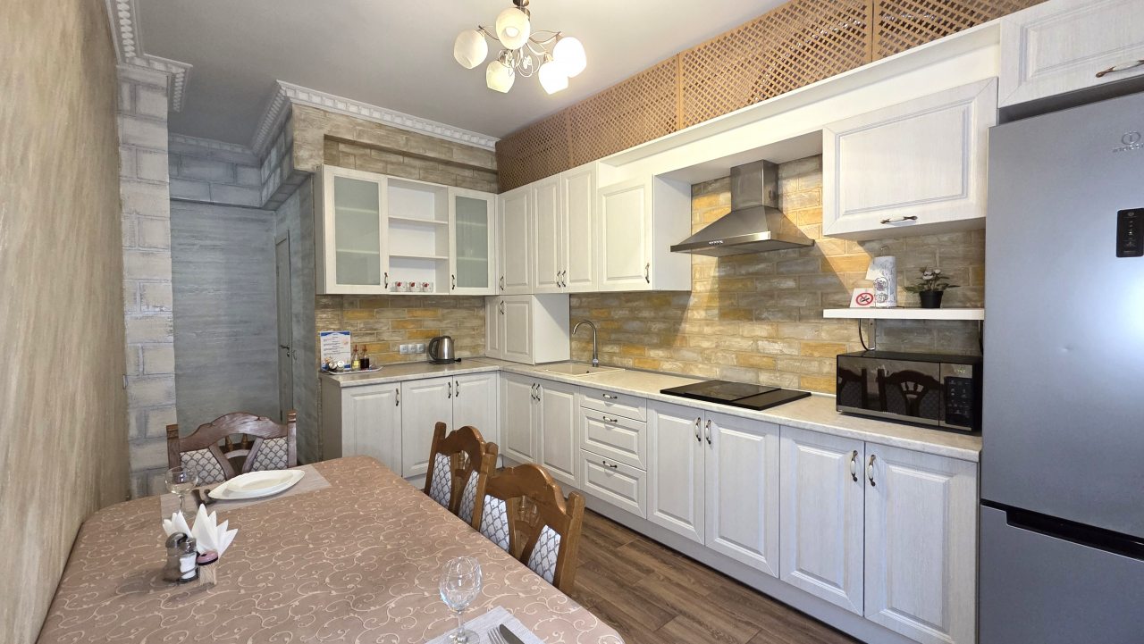 Классные апартаменты с хорошим ремонтом, рабочей техникой и комфортабельной мебелью. На кухне есть необходимый инвентарь и принадлежности. Недостатков при проживании не заметил, да и не искал. Всё супер! 10 из 10!