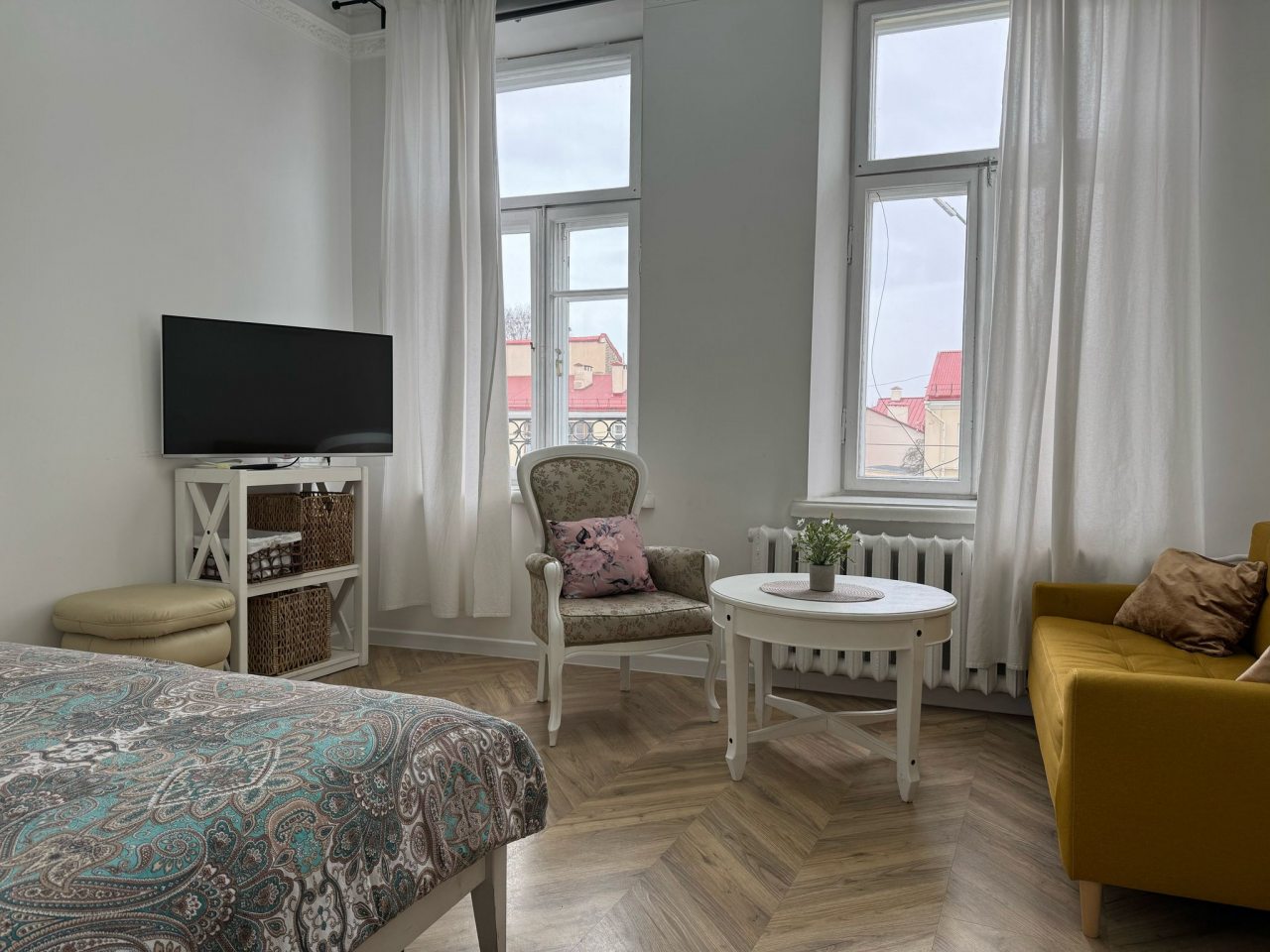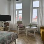 Центр города, все рядом. Напротив дома остановка общественного транспорта. Квартира расположена в старом доме, но это не должно пугать. Сама квартира, интерьер полностью соответствуют фото и описанию. Есть все для комфортного отдыха. Очень порадовало наличие кофе и фигурный сахар на кухне). Обратите внимание, заселение и оплата проходят без контакта с владельцем, через кейс бокс. Поэтому о наличных без сдачи лучше позаботиться заранее.