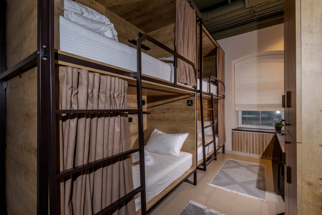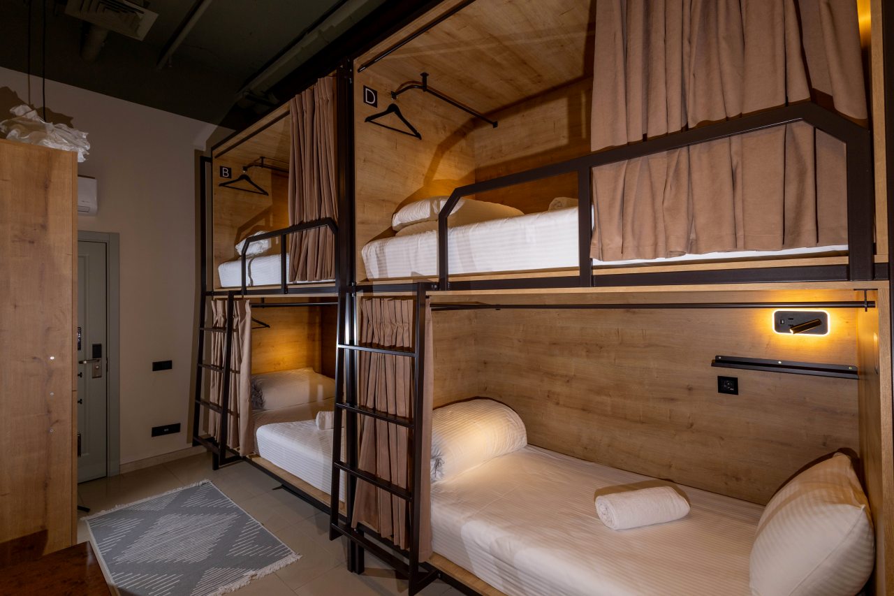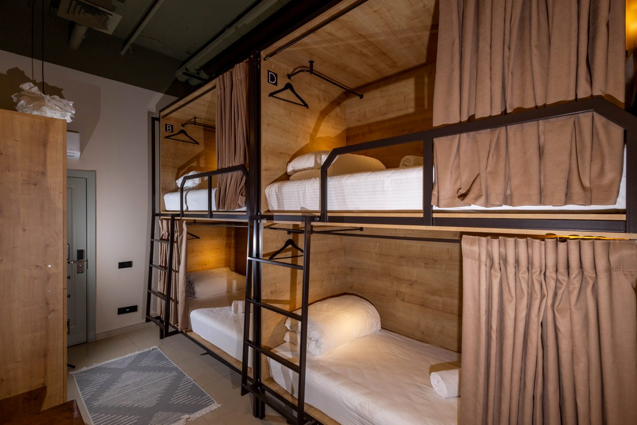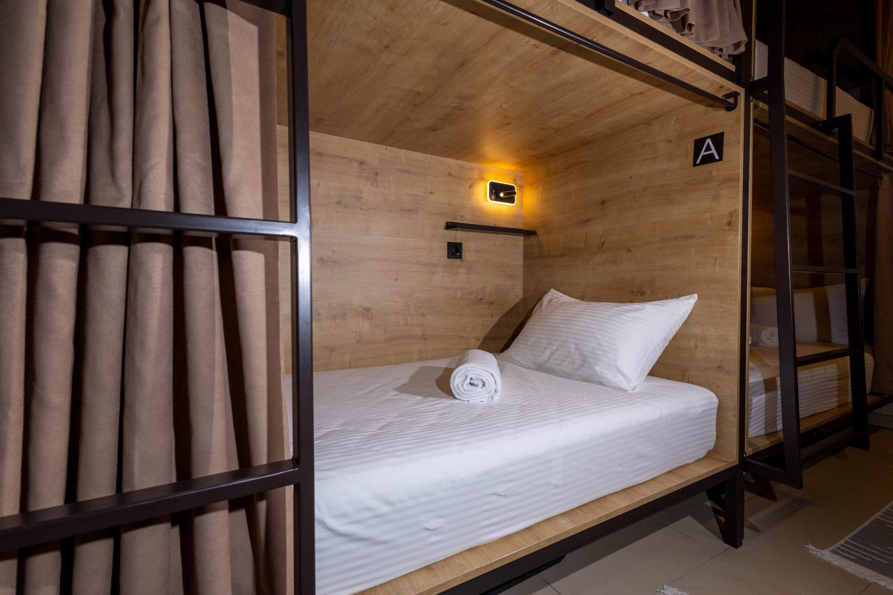 Для размещения доступны комфортабельные номера разной вместимости для мужчин и женщин, которые обустроены капсульными кроватями с индивидуальными шторками, розетками и светильниками. Для хранения личных вещей предусмотрены персональные шкафчики. На этаже есть общие туалеты и душевые. За отдельную плату можно посетить сауну. Доступно пользование гладильными принадлежностями.