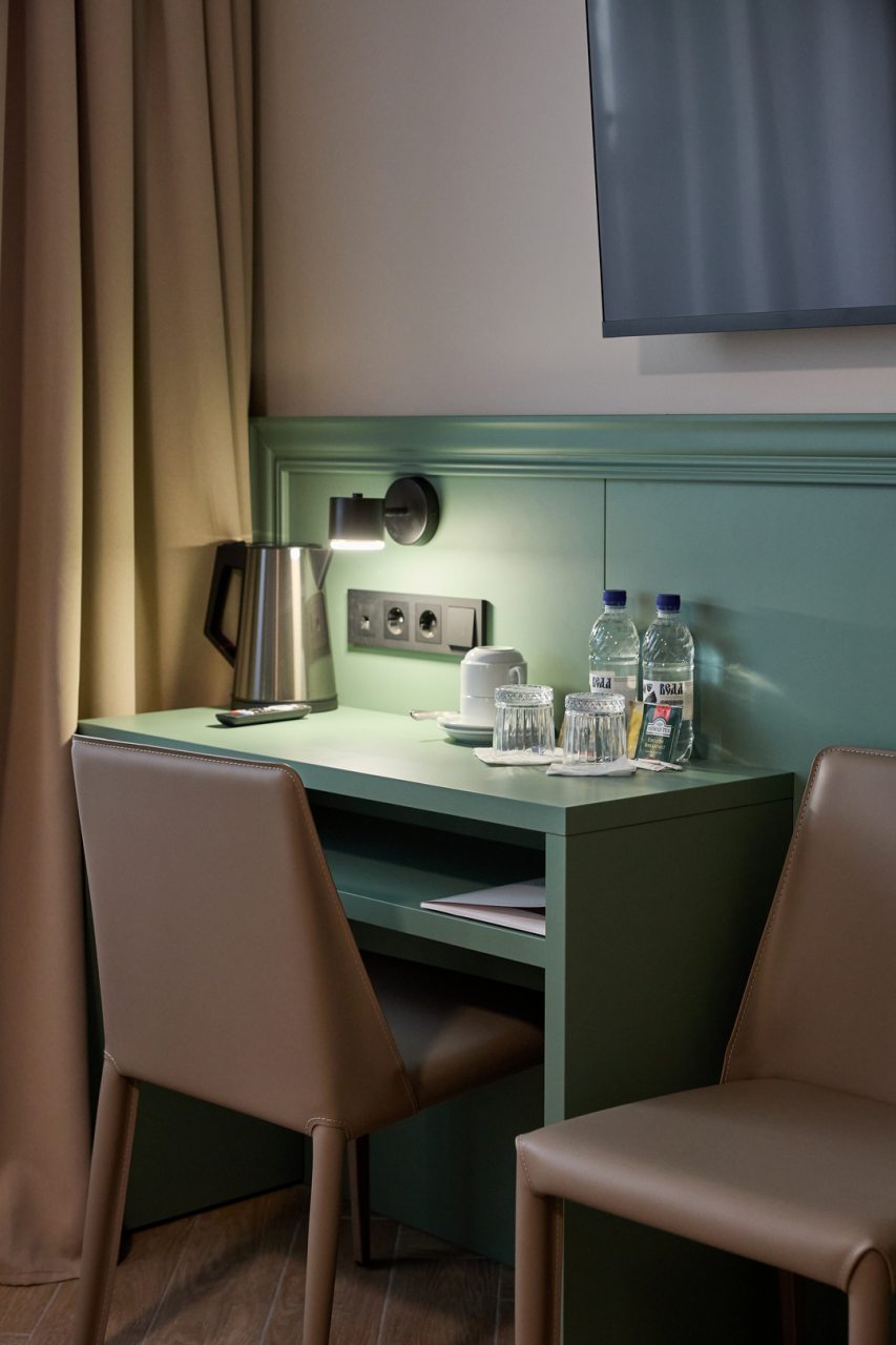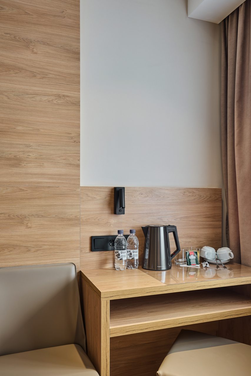 Чтобы вы в любой момент могли насладиться горячим напитком, в номерах установлена чайная станция и стол со стулом. Поблизости находится ресторан, где можно вкусно пообедать.