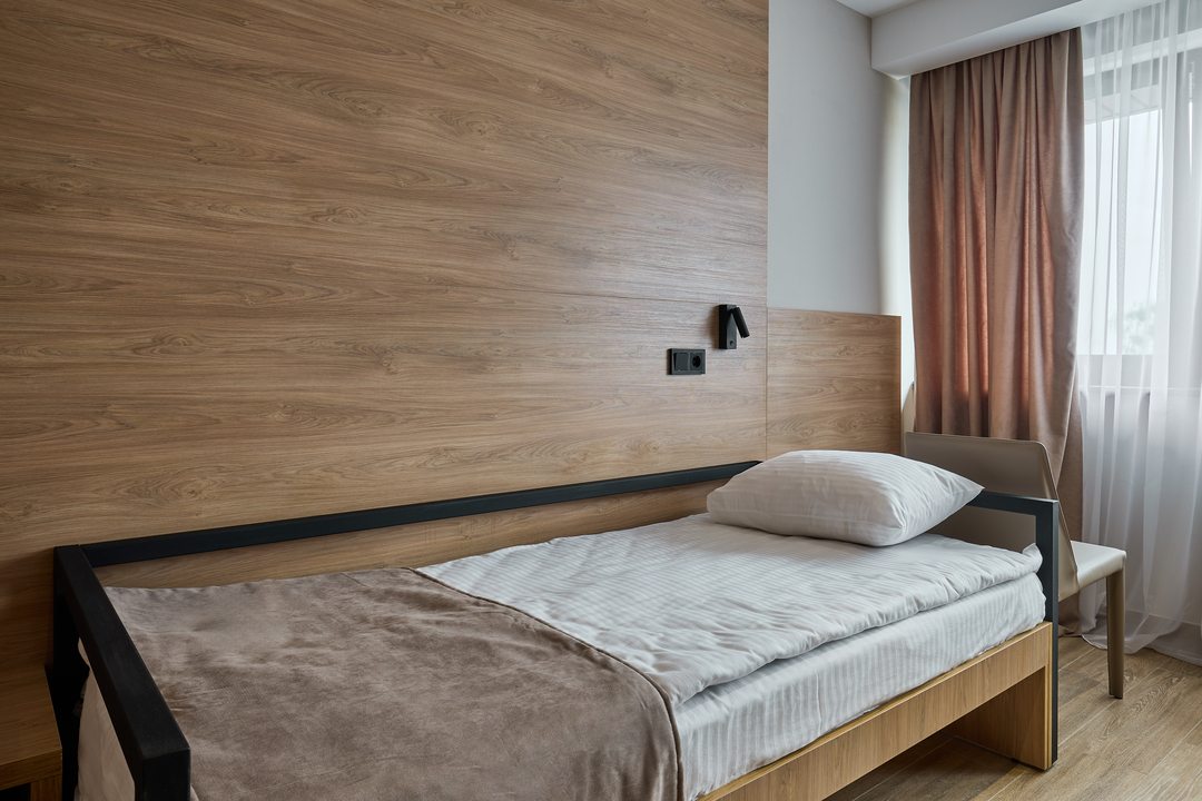 Для выбора доступны различные категории номеров, каждый из которых укомплектован необходимой мебелью и техникой, включая удобную кровать, телевизор, прикроватные лампы и тумбы, кондиционер, индивидуальный санузел с феном, полотенцами, средствами для личной гигиены.