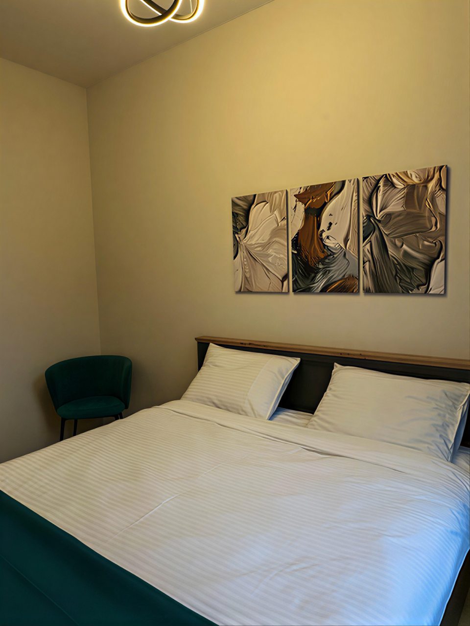Бронировали мы этот вариант проживания заранее, поэтому никаких сюрпризов для нас не возникало с номерами или чем-то еще. К нашему приезду все подготовили. Апартаменты чистые, без посторонних запахов. Текстиль и мебель чистые, в хорошем состоянии. В целом, от фото они не отличаются. В оснащение входит все самое необходимое для отдыха. Мы прекрасно здесь отдохнули и теперь порекомендуем это место друзьям!