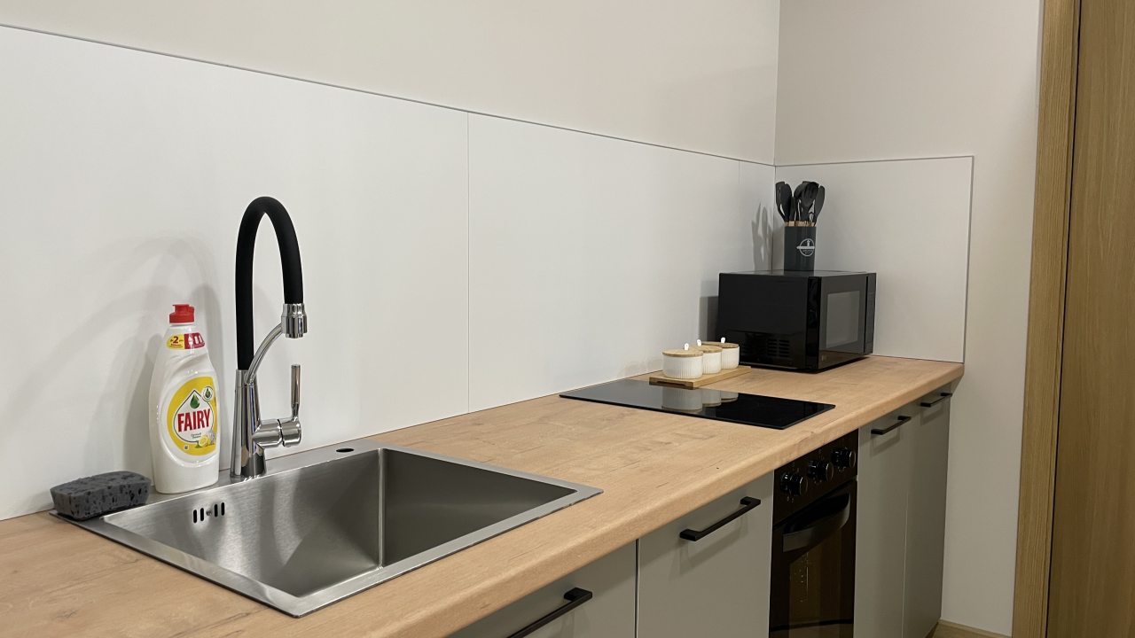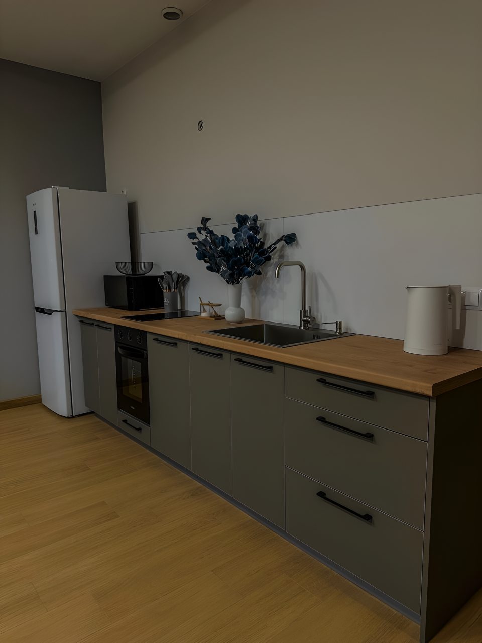 Кухонная зона порадует вас разнообразием бытовой техники, включая чайник, варочную панель, СВЧ-печь, духовой шкаф; таким образом, вы сможете радовать себя любимыми блюдами в любое время.