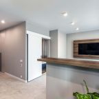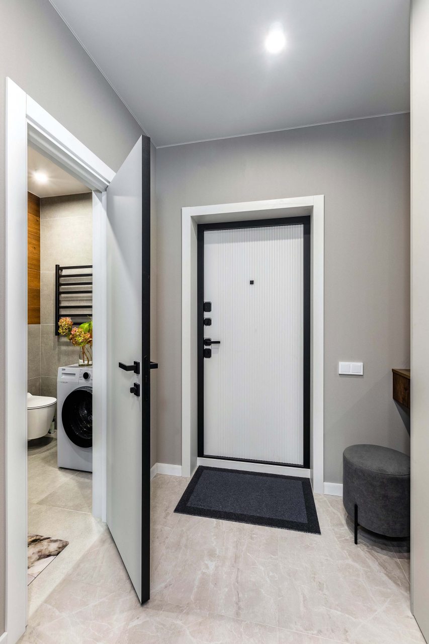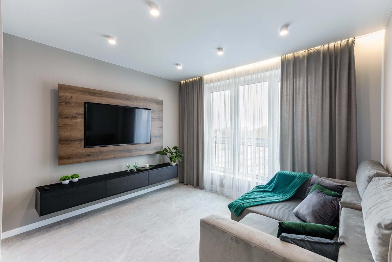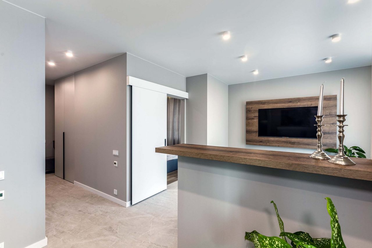 Внутри гостей ожидает мягкая двуспальная кровать, удобный диван, телевизор, вместительные шкафы, плотные шторы для лучшего сна, стиральная машина, а также современный санузел с душевой.
