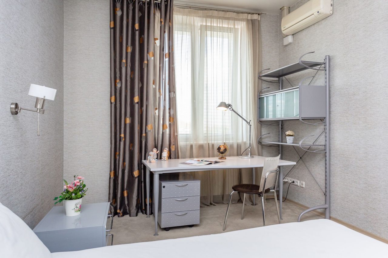 Просторная квартира с приятными светлыми тонами в дизайне. Меблировка практичная и функциональная. В квартире уютная и комфортная атмосфера. Что понравилось особо, это наличие в спальне небольшой. Но удобной рабочей зоны, где можно было посидеть за ноутбуком. В целом и всем остальным мы довольны.