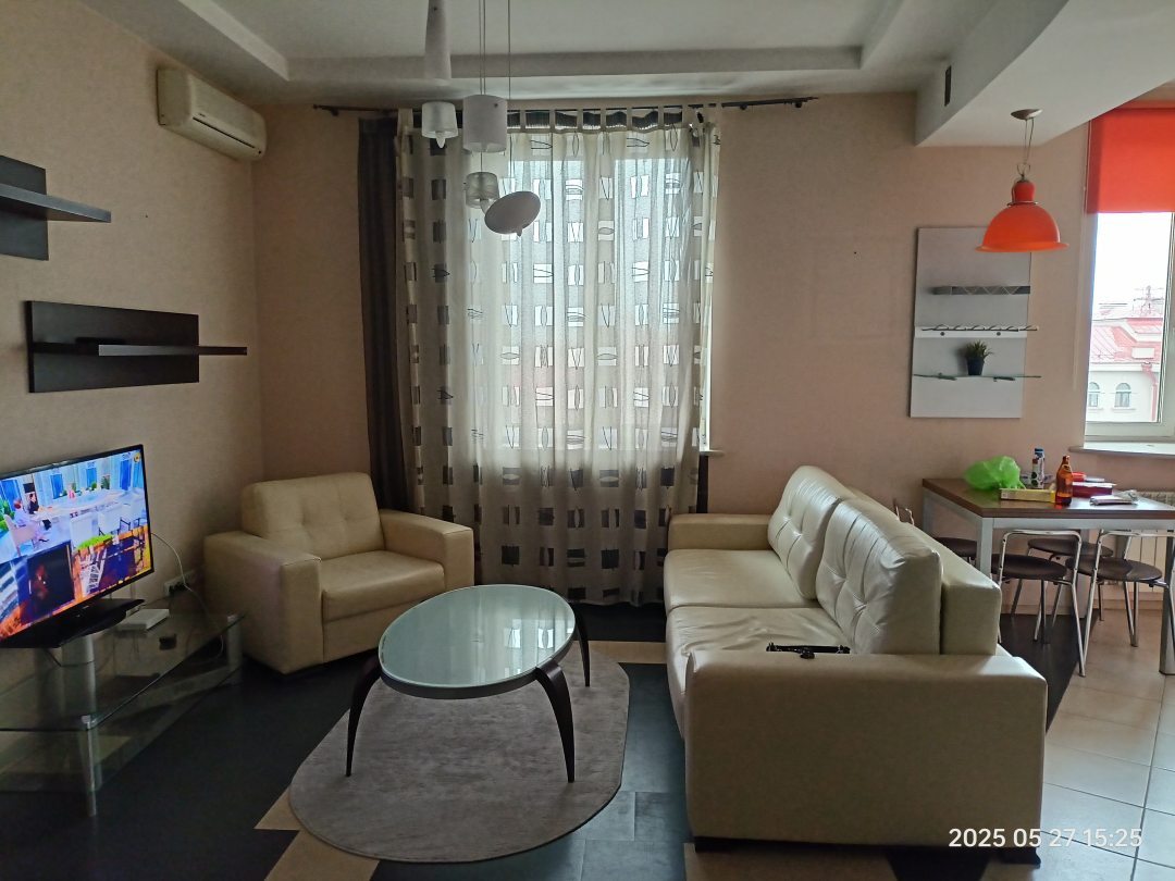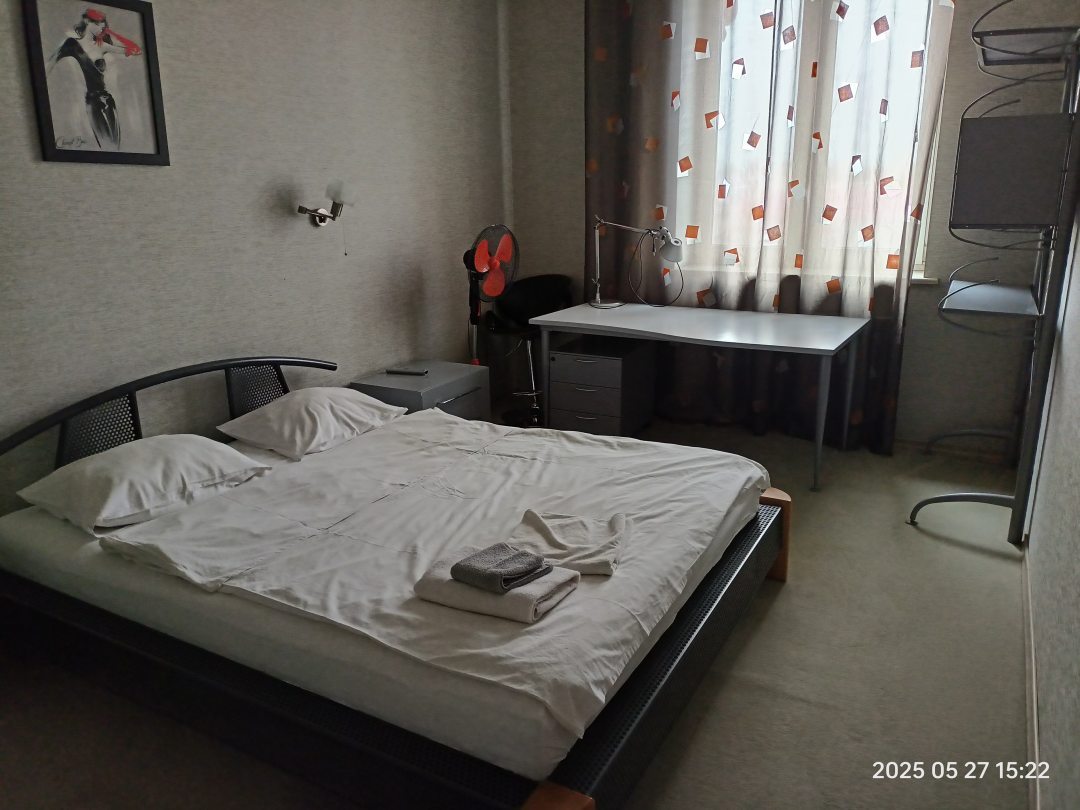 Квартира в благоустроенном районе, рядом рынок, супер маркеты., вся инфраструктура (автобусные, трамвайные остановки.) Квартира светлая, уютная, просторная. В квартире в каждой комнате телевизоры, огромная уборная.Но есть свои мелкие недочеты. Все фото квартиры соответствуют действительности.Глаза радовались уютной кожаной мебели и она действительно была белой как на фотографиях.