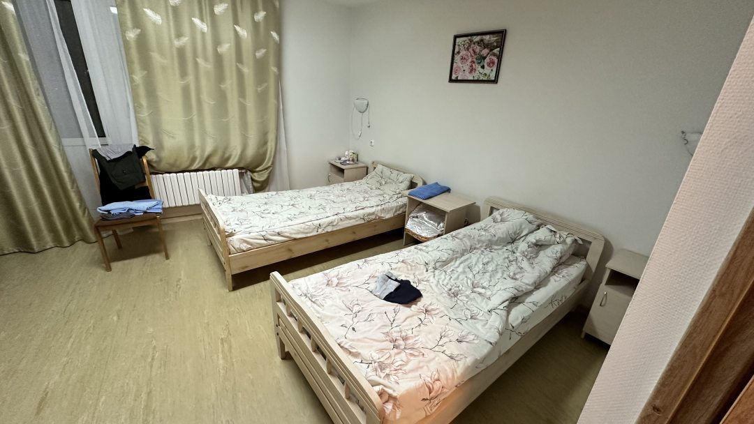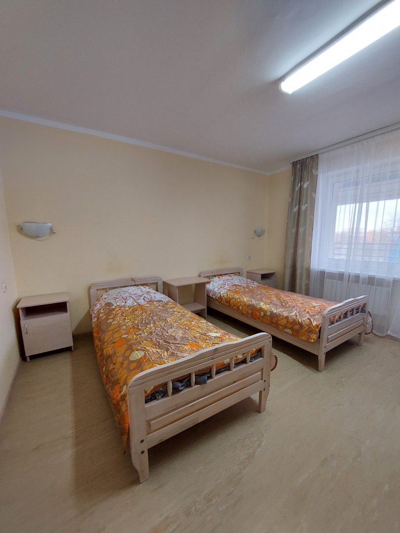 Отель расположен в ортопедическом,реабилитационном центре,большой номер,есть кухня,посуда,новая мебель,есть лоджия.В 6 минутах ходьбы от отеля есть столовая.