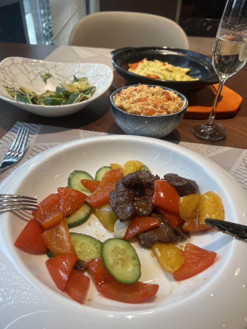 В ресторане китайская кухня , может быть была и другая кухня. Предупреждаю, что очень большие порции, особенно салаты из овощей. Я заказывала салаты и мясо с овощами И официант мне сказал, что порции очень большие и чтобы я рассчитывала на свои силы по их поеданию (может быть это правило этикета не предупреждать ?), поэтому большую часть еды я не съела (мясо съела, а вот овощи пришлось оставить, хотя их упаковали с собой, но у меня не было времени их потом съесть). В стоимость входило СПА , но я не воспользовалась .