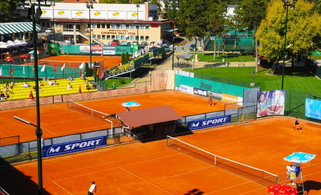 Вы можете поиграть в теннис на кортах рядом с отелем или посмотреть на турниры прямо из своего номера или с террасы на крыше.