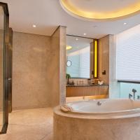 Персонал приветливый. Отель удобно расположен, вокруг хорошая инфраструктура. В номере большое панорамное окно, красивый вид на город. Ванная комната – роскошная. Рекомендую.