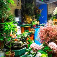 Гости могут выпить чашечку кофе или чая в красивом внутреннем дворе с цветами.