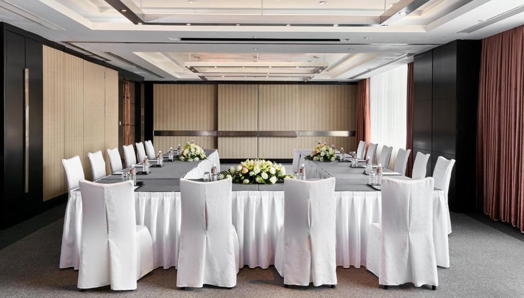 К услугам гостей фитнес-центр, 3 ресторана, хорошо оборудованные залы для совещаний и банкетов.