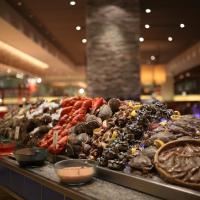 В круглосуточном ресторане i-Café сервируют «шведский стол» с блюдами интернациональной кухни.