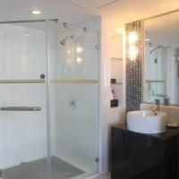 Spacious bathrooms have free toiletries and a walk-in shower.