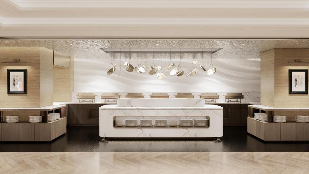 В ресторане Oakroom подают блюда западной кухни по системе «шведский стол».