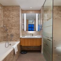 Роскошные апартаменты оформлены в современном стиле и оснащены полностью оборудованной кухней, а также гостиной и столовой зонами.