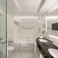 Из больших окон роскошных номеров открывается прекрасный вид на город или ландшафтный сад отеля.