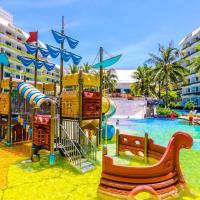 Ярко оформленная территория у бассейна, на которой находится детский бассейн с подогревом, пиратский корабль и аквапарк, занимает площадь 3 000 кв.