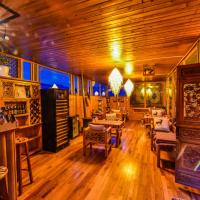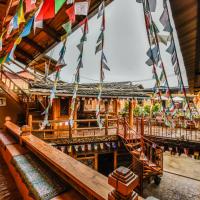 В оформлении гостевого дома использованы традиционные тибетские украшения и деревянная структура.