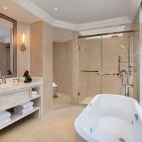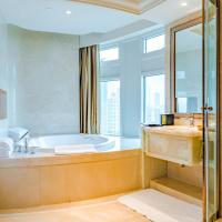 В номерах отеля Radisson Shanghai Xingguo с ковровым покрытием на полу и элегантной деревянной мебелью есть мини-бар, принадлежности для чая/кофе и отделанная мрамором просторная ванная комната с ванной и душем.