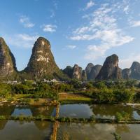 Вилла Yangshuo Hidden Dragon расположена среди гор в загородной местности округа Яншо, на берегу реки Юлонг.