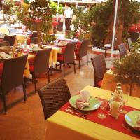 В ресторане с уютной террасой предлагают широкий ассортимент напитков и блюд из рыбы и мяса.