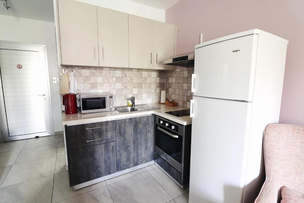Кухня укомплектована духовкой, микроволновой печью, холодильником, плитой и чайником.
