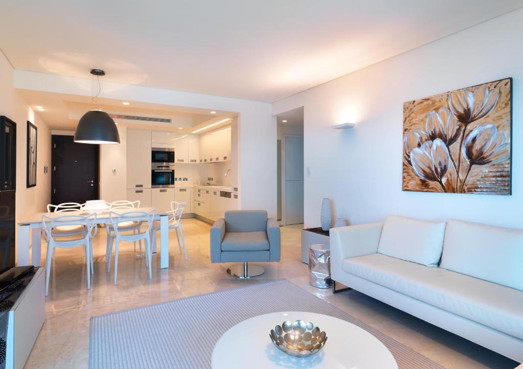 Роскошные люксы с панорамным видом из окон располагают стильной гостиной зоной и кухней.