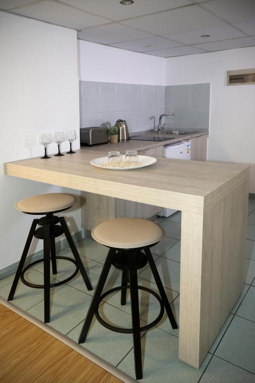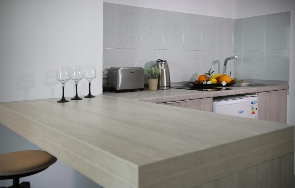 Просторные номера-студио располагают хорошо оборудованной мини-кухней со столовой и собственной ванной комнатой с ванной.