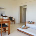 Очень гостеприимный персонал, всегда готовы были прийти на помощь. Территория ухоженная, есть бассейн с шезлонгами. Номер светлый и просторный, из окон открывался вид на море.