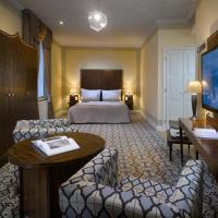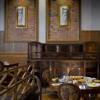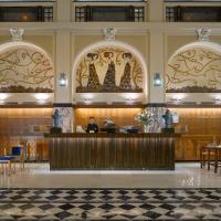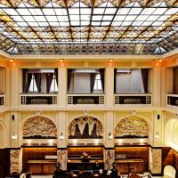 Интерьер отеля украшает мраморная мозаика и расписанный вручную стеклянный потолок.