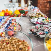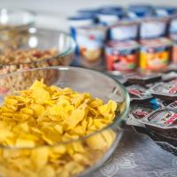 Завтрак обычно происходит в отеле, который является партнером. Он расположен рядом с комплексом. При завтраке дается возможность хорошо поесть, в основном используется чешская кухня, но и ряд интернациональных блюд.