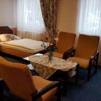 Отель Eurohotel Garni находится недалеко от делового и спа-центра Карловых Вар.