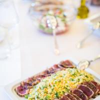 На территории открыт ресторан, специализирующийся на блюдах интернациональной кухни.
