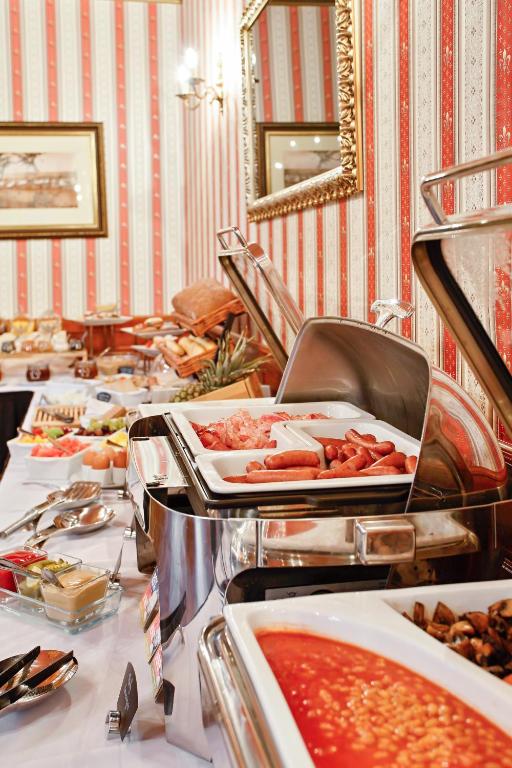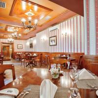 Гости могут попробовать вкусные и сытные блюда, которые предлагаются в ресторане с широким ассортиментом в меню. Пообедать можно также в террасе и на саду.